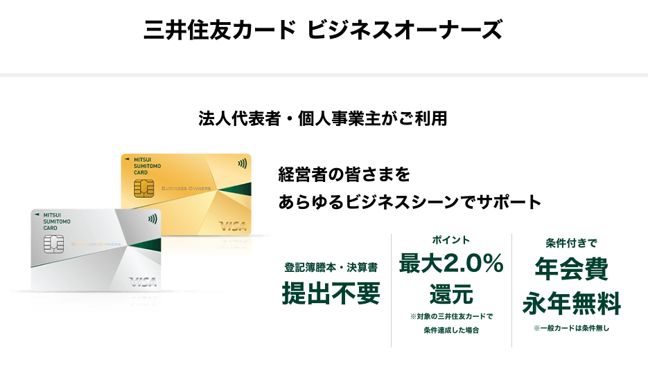 | カードの名前 | 三井住友カード ビジネスオーナーズ |