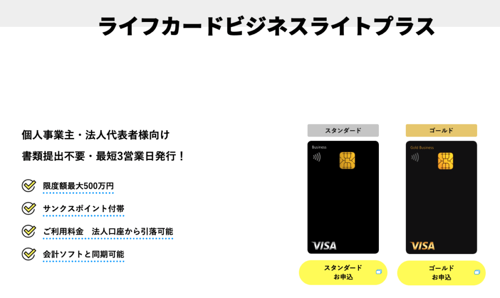 | カードの名前 | ライフカードビジネスライトプラス(スタンダード) |