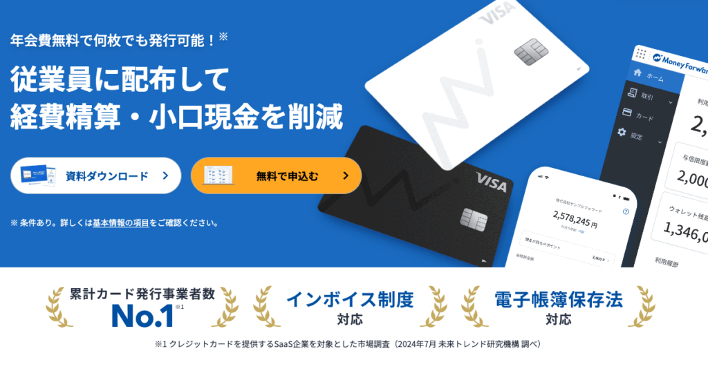 しかし、設立間もない企業や、まだ決算実績がないスタートアップ企業にとっては、この審査基準が大きなハードルとなることがあります。そうした企業向けに、近年では決算書や登記簿謄本の提出が不要な法人カードも増えています。例えば、三井住友カード ビジネスオーナーズは、法人代表者・個人事業主向けで、登記簿謄本・決算書提出不要とされており、マネーフォワードビジネスカードも決算書提出不要で申し込み可能です。